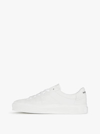 - Lace-up sneakers in calfskin leather. - City Sport line. - Chito X GIVENCHY collaboration. - Silvery-finish metal 4G piece on the tongue. - Contrasting tag-effect 4G print on the side. - Contrasting GIVENCHY signature on the back with superposed tag-effect Chito motif. - 4G emblem debossed on the back of the sole. - GIVENCHY 4G signature debossed on the leather insole. - Comfortable.