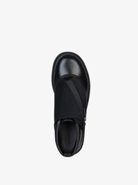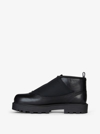 - Ankle boots in shiny calfskin leather. - Storm line. - Large insert in synthetic fiber on top with zip and contrasted GIVENCHY signature on the side. - 4G emblem debossed on the back. - GIVENCHY signature debossed on the heel. - Thick chunky rubber sole. - GIVENCHY signature debossed on the leather insole.
