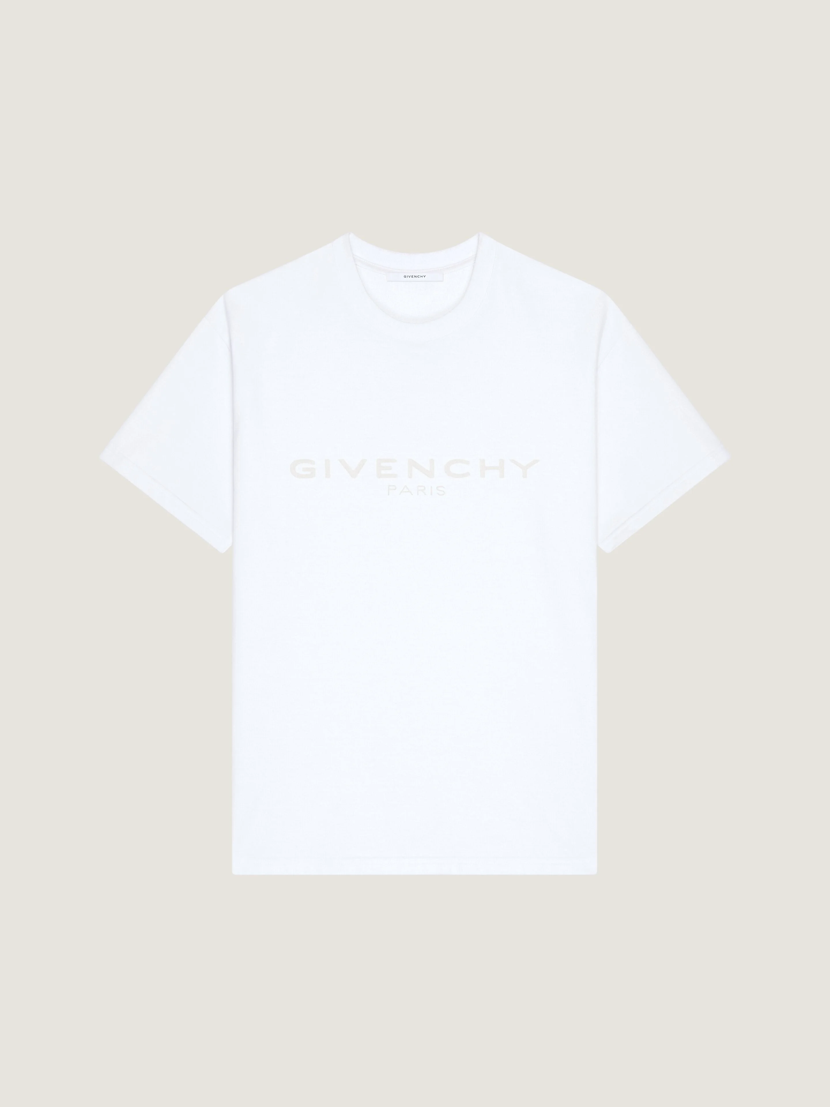 - Short-sleeved t-shirt in cotton and silk. - Crew neck. - GIVENCHY Paris tonal jacquard on the chest. - Model measures 6.1 Feet and wears a size M.