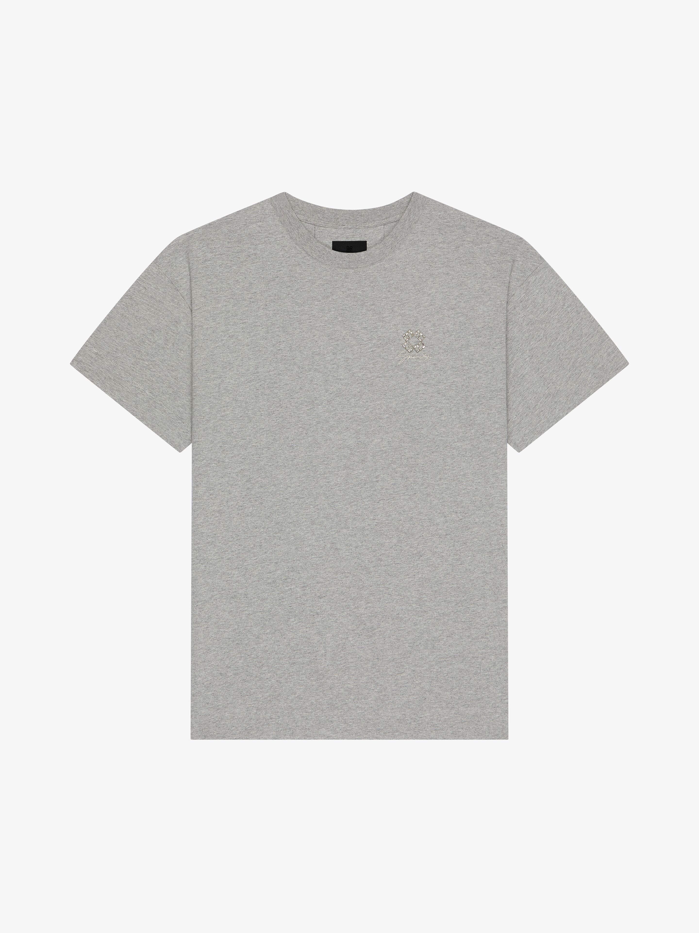 - Short-sleeved t-shirt in cotton. - Crew neck. - 4G emblem in crystals hand-embroidered on the chest. - Small GIVENCHY signature in metallic thread embroidered on the chest. - Classic fit. - Model measures 6.1 Feet and wears a size M.
