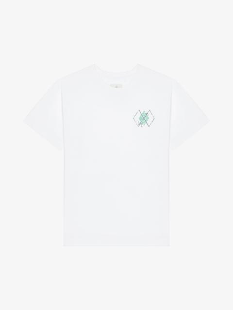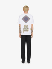 - Short-sleeved t-shirt in cotton. - Crew neck. - Hubert objects print. - Raised Carpet patches stitched on front and back. - GIVENCHY signature in the pattern. - Classic fit. - Model measures 6.1 Feet and wears a size M.