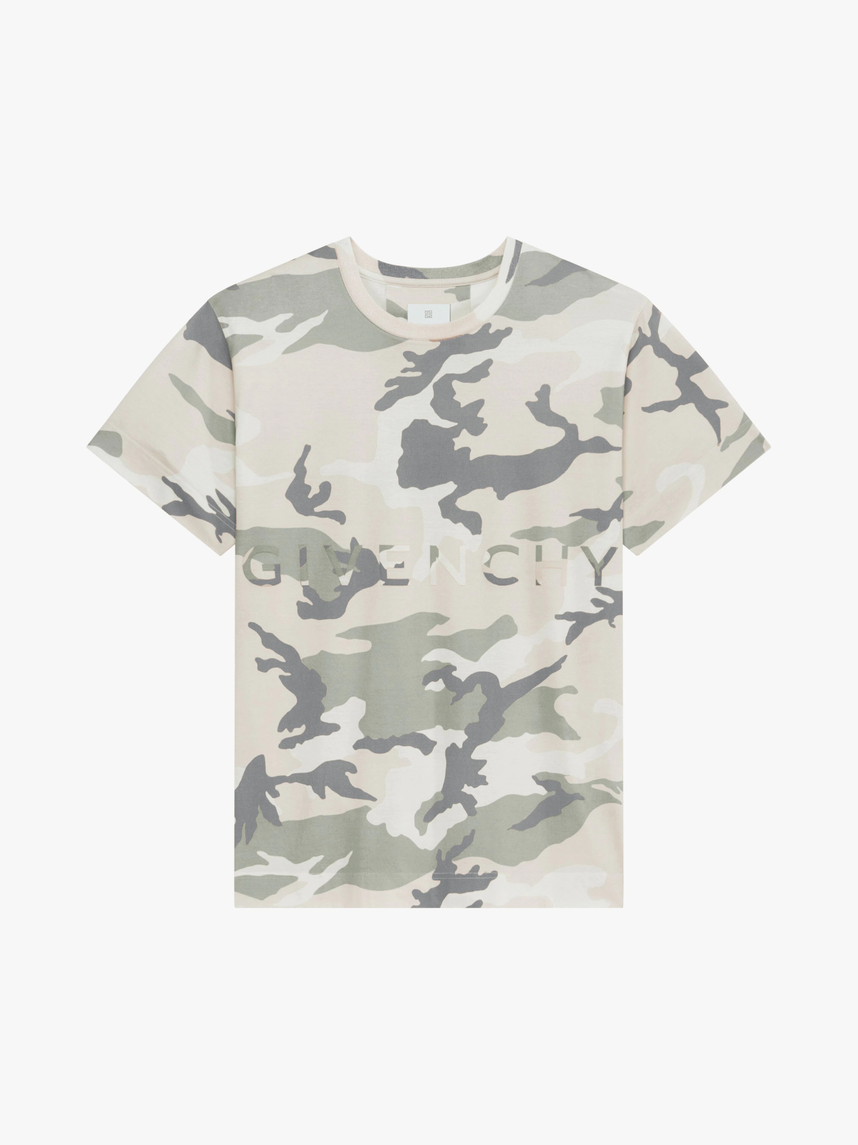 - T-shirt in soft jersey with camouflage print. - GIVENCHY signature heat-bonded on the front. - 4G emblem heat-bonded on the back.