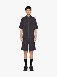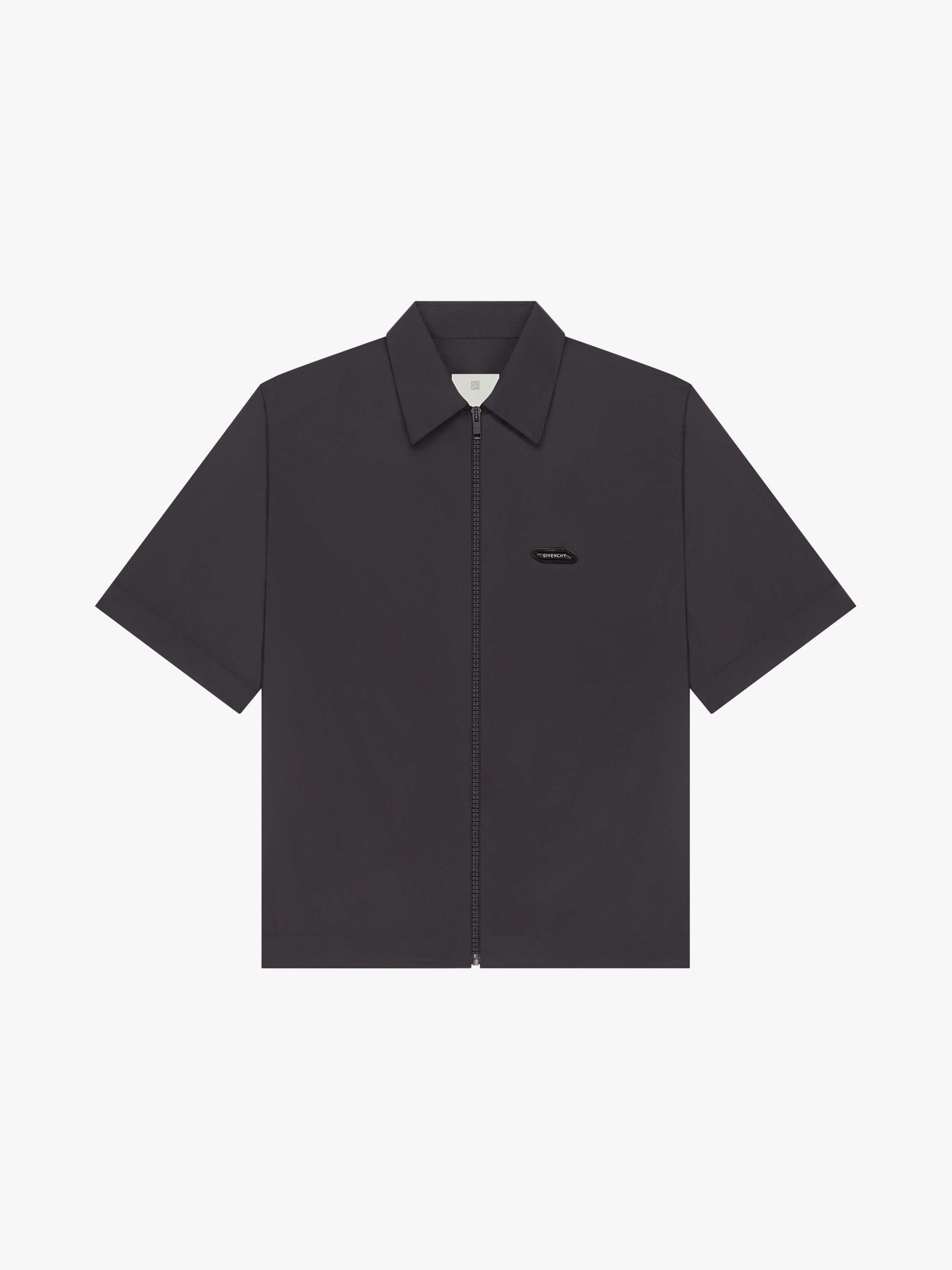 - Short-sleeved shirt in technical fiber. - TK-MX line. - Classic collar. - Tone on tone bubble patch with white GIVENCHY signature on the front. - Small contrasted 4G emblem embroidered on the back. - Tone on tone zipped closure on the front.