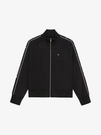 - Tracksuit jacket in fleece with GIVENCHY jacquard bands on the sleeves and shoulders. - High-neck. - Raglan sleeves. - Metal zippered closure. - Metal 4G piece on the chest. - Ribbed collar, hem and cuffs. - Two side pockets. - Oversized fit.