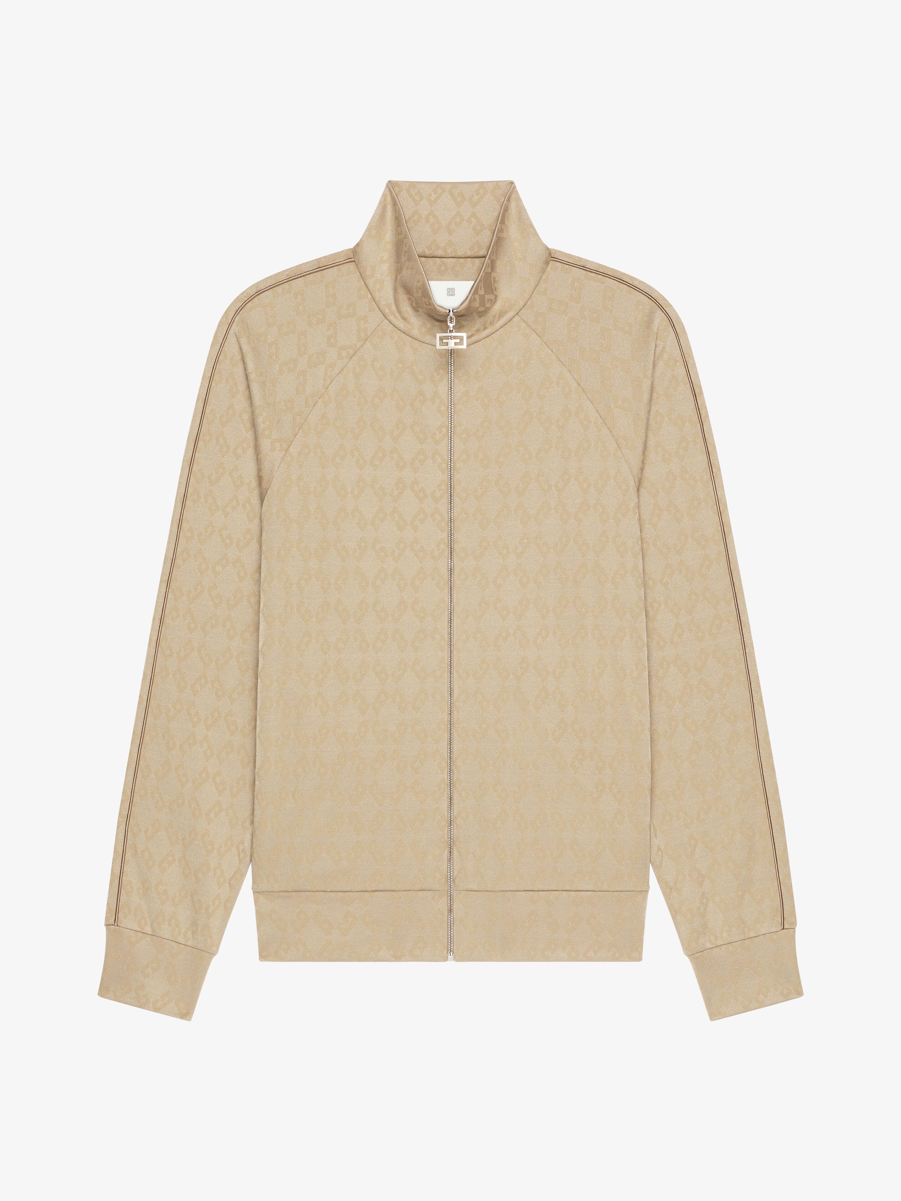 - Tracksuit jacket in shiny monogram 72 jacquard. - High neck. - Zipped closure with GIVENCHY engraved 2G zip. - Two side pockets. - Shiny piping detail. - Model measures 6.1 Feet and wears a size M.