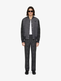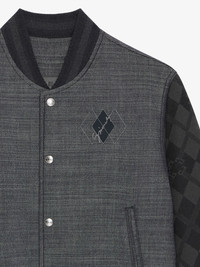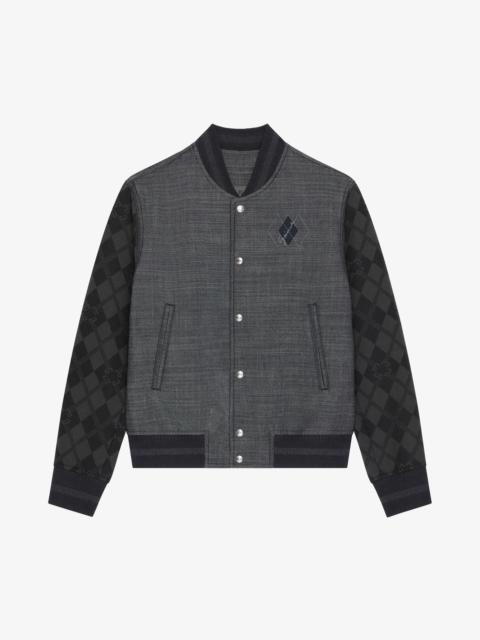 - Varsity jacket in double face denim. - GIVENCHY argyle pattern signature embroidered on the chest. - Argyle pattern with monogram 72 jacquard on the sleeves. - Ribbed elasticated knit collar, cuffs and hem with contrasting stripes. - Snap closure. - Two side pockets. - Classic fit. - Model measures 6.1 Feet and wears a size M.