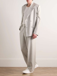"A nod to the formative notion of sophistication" is how Givenchy describes the tailoring in its SS24 collection, and these trousers encapsulate that ethos nicely. They’re cut wide from wool-twill and finished with pressed creases. Wear them with the matching jacket. Size & Fit - Fits true to size. Take your normal size - Wide leg, low-crotch style - Unfinished hems; alter to fit - Lightweight, non-stretchy fabric - Model is shown wearing an IT 48 - Model measures: waist size 32, height 6'2"/ 188cm Details & Care - Grey and white wool - Hook, button and zip fastening - 100% wool; lining: 60% acetate, 40% viscose - Dry clean - Designer colour: Chalk