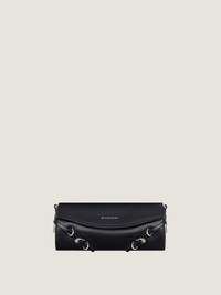 - Crossbody bag in grained shiny calfskin leather. - Voyou line. - Magnetic flap closure. - Adjustable shoulder strap offering shoulder or crossbody carrying. - GIVENCHY signature embossed on the front of the bag. - GIVENCHY engraved metal buckles. - Silvery-finish metal details. - One main compartment. - Adjustable shoulder strap length from 17.3 to 25.2 in.