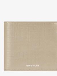 - Bifold wallet in calfskin leather with small 4G pattern embossed all-over. - GIVENCHY signature embossed on the front. - Silvery GIVENCHY signature embossed on the inside. - Two bill pockets and eight card slots.