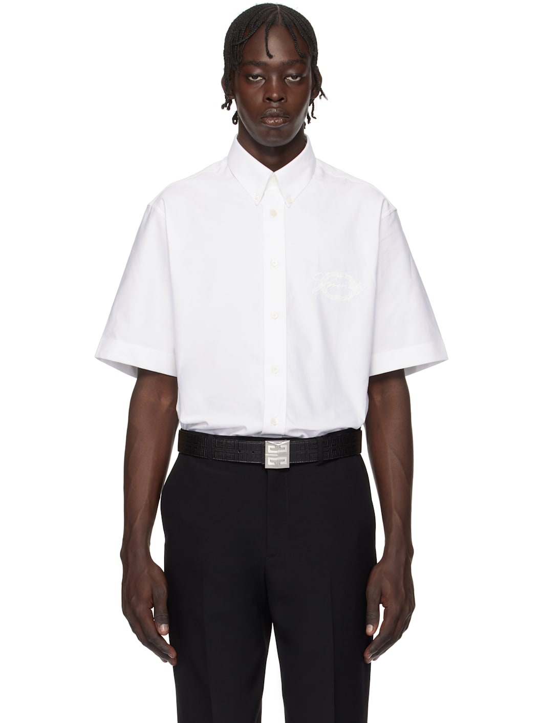 Cotton poplin shirt. · Button-down spread collar · Button closure · Logo graphic embroidered at chest · Shirttail hem · Box pleat at back yoke Supplier color: White