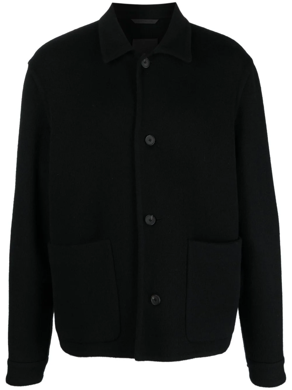 wool-blend shirt jacket Highlights - Black - Wool-cashmere blend - Felted finish - Classic collar - Front button fastening - Long sleeves - Buttoned cuffs - Two front patch pockets - No lining Made in Italy Composition Outer: Wool 90%, Cashmere 10% Lining: Cupro 100% SIZE & FIT Model measurements Height 6 ft 2 in(1.88 m) Bust/Chest 35.03 in(89 cm) Hips 35.82 in(91 cm) Waist 27.95 in(71 cm) FittingInformation Designed for a regular fit, allowing for a comfortably loose fit throughout the body Made from a midweight non-stretch fabric This piece fits true to size – take your usual size Washing instructions Dry Clean Only