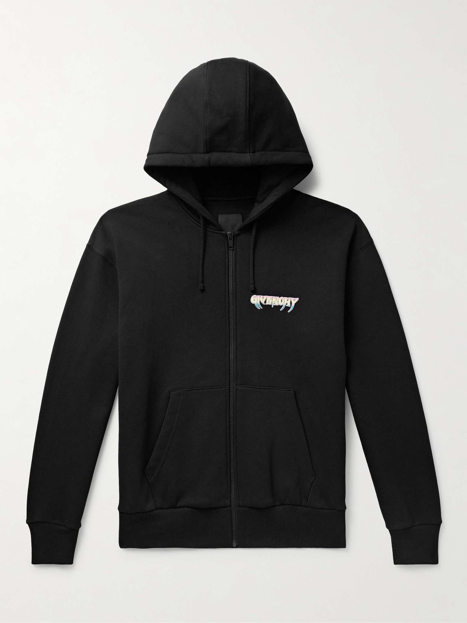 Taking design cues from band tees, Givenchy's hoodie is printed with a colourful 'World Tour' graphic at the back that contains its founding year, headquarters location and an extensive list of its global retail stores. It's cut for a relaxed fit from soft cotton-jersey. Size & Fit - Fits true to size. Take your normal size - Designed for a relaxed fit - Mid-weight, stretchy fabric - Model is shown wearing a M - Model measures: chest 38"/ 96cm, height 6'2"/ 188cm Details & Care - Multicoloured cotton-jersey - Zip fastening - 100% cotton - Machine wash