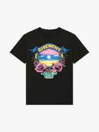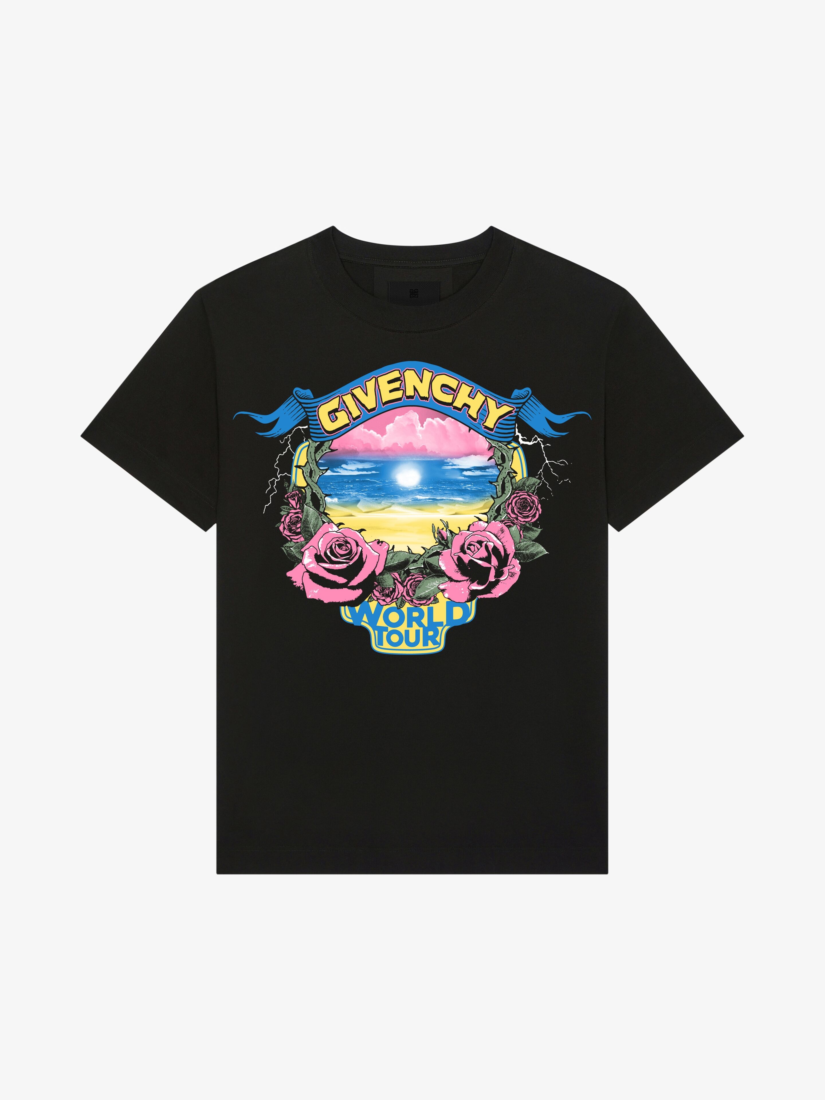 - Short-sleeved t-shirt in cotton. - Crew neck. - GIVENCHY world tour artwork printed on the front. - Small 4G emblem embroidered on the lower back. - Oversized fit. - Model measures 73.2 in and wears a size M.