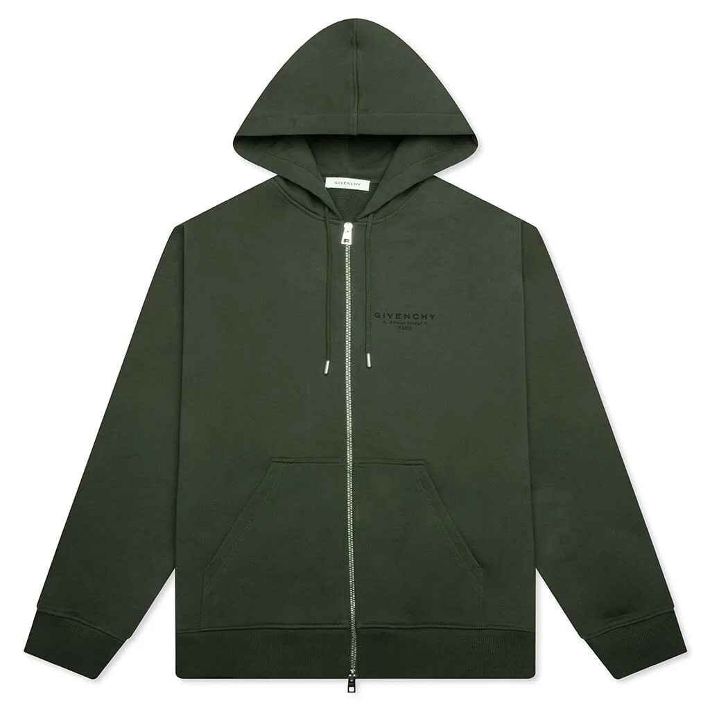 Embody the elevated aesthetics of the GIVENCHY brand with the Zipped Hoodie. Made from soft cotton, this hoodie is cut to have a relaxed fit. Classic details include a two-way zipper front, drawcord hood, kangaroo pocket, and ribbed trims. A signature GIVENCHY logo is stamped at the chest for subtle branding. - 100% Cotton - Relaxed fit - Two-way zipper front - Drawcord hood - Screen-printed logo - Kangaroo pocket - Ribbed trims - Style No: BMJ0NJ3YRJ-305