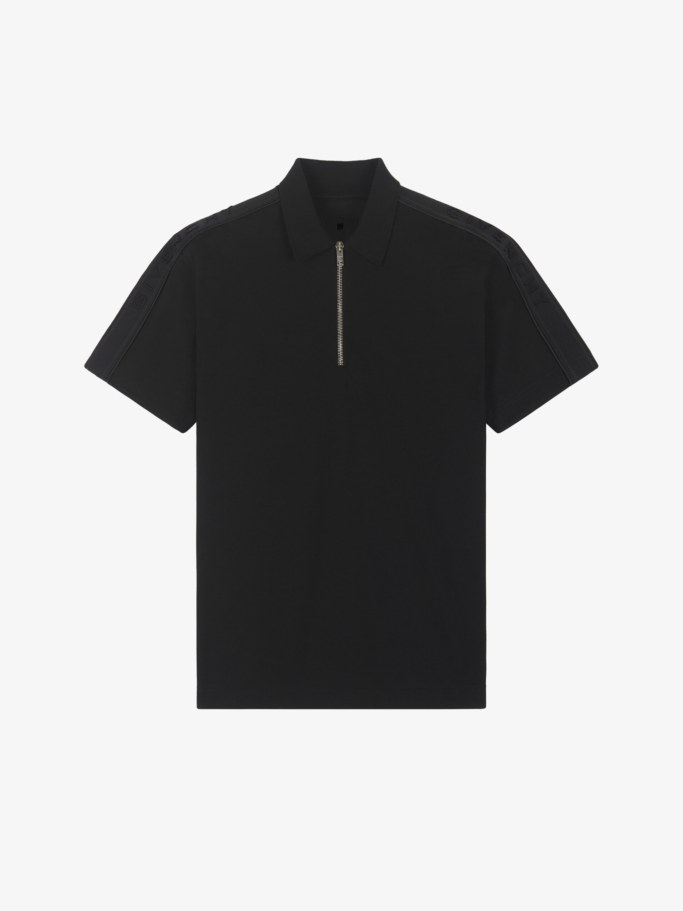 - Polo in mercerized cotton piqué. - Color: black. - Metal half-zipper with GIVENCHY zipper pull and 4G rivet on the front. - Metal eyelets on the sides. - Slim fit.