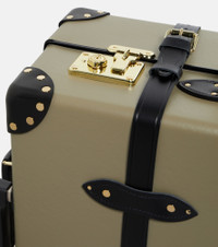 Globe-Trotter's Centenary collection commemorates a hundred years of luggage craftsmanship. This wheeled Large check-in suitcase is made from patented vulcanized fiberboard and finished by hand with leather corners, straps, and handles. Product Details - Material: vulcanized fiber - Lining: fabric - Made in the UK - Designer color name: Olive & Black - Gold - Closure: push-lock fastening - Top handles - Trim: leather - Item number: P00830302 Size & Fit - Height 76cm-30" - Width 48cm-19" - Depth 26cm-10"