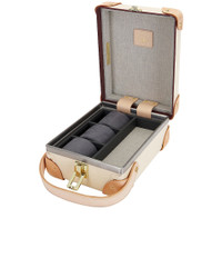 Details - Vulcanized fiberboard case with nickel hardware and leather trims - Made in England - Hinge top with latch closure - Three interior slots with compartments for watches on a removable tray - Case measures approx 6.3" W x 8.9" H x 2.5" D - Top handle with a 2.5" drop - Our Style No. GLOB-MA5 - Manufacturer Style No. GTSAFIN3WC