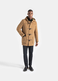 Background This duffle coat is a winter essential, made to withstand the elements without compromising on style. Crafted from a fine blend of Italian wool, the coat features lined sleeves and a fixed shoulder cape for warmth. All the hallmarks of the original duffle coat remain: a traditional pancake hood, buffalo horn toggles, and leather loop fastenings. Cut to a comfortable mid length, it features a detachable throat tab for added protection against the wind, while a tartan-lined interior offers a nod to heritage and a quiet touch of understated style. Model is 6'3", chest size 39" and wears a size M. Design Details - Made in England - Regular fit - Fixed Shoulder Cape - Unlined with lined sleeves - Buffalo horn toggles and leather loop fastenings - Style Code: MC3251 Fabric & Care - Main: 80% Wool, 20% Polyamide - Plain face, tartan reverse - Sleeve Lining: Satin - Fabric Weight: 960g/lm - Dry clean only - Maximum temperature 110 degrees - Do not tumble dry