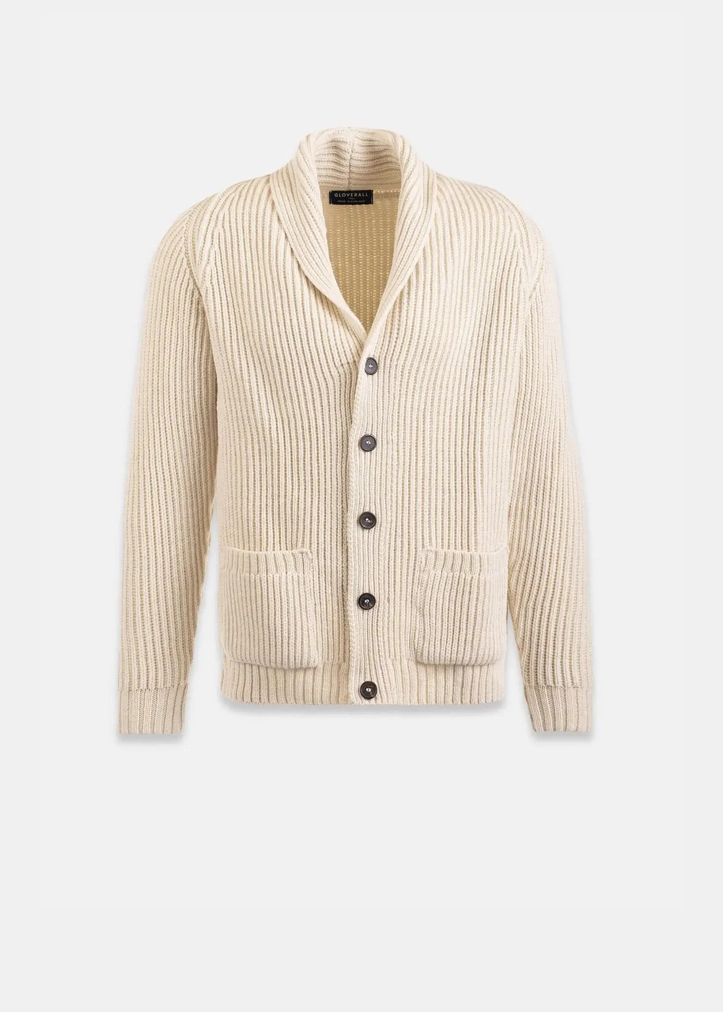 Background The shawl collar cardigan gained widespread appeal in the 1950s, partly thanks to its adoption by style icons like Steve McQueen and Cary Grant, who wore it on and off-screen. Its combination of comfort and style made it a favourite for layering, whether paired with a casual shirt or a more formal ensemble. An essential layering piece all year round, our Shawl Collar Cardigan features two front patch pockets, a button-through design and an understated shawl collar. Made in England, this chunky gauge knit has been crafted using 100% Merino wool. Design Details - Made in England - Two front pockets - Chunky 7-gauge knit - Branded horn buttons - Raglan Sleeve* - Style Code: MK5094Please note that due to the raglan style of this coat, the sleeve measurement is taken from the collarbone to the hem of the sleeve. Fabric & Care - 100% Merino Wool - Hand wash - Reshape whilst damp - Do not machine wash - Do not tumble dry - Do not bleach