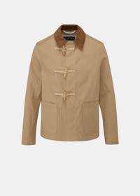 Background The perfect addition to your wardrobe with all the style of the duffle coat. Made from khaki denim cloth with a complimentary corduroy. Complete with jute rope fastenings and and wooden toggles. Design Details - Made in England - Waist length - Contrast collar - Jute rope fastening - Wooden toggles - Style Code: M3531 Fabric & Care - 100% cotton - 100% cotton collar - Machine washable - Do not tumble dry - Do not bleach - Cool iron