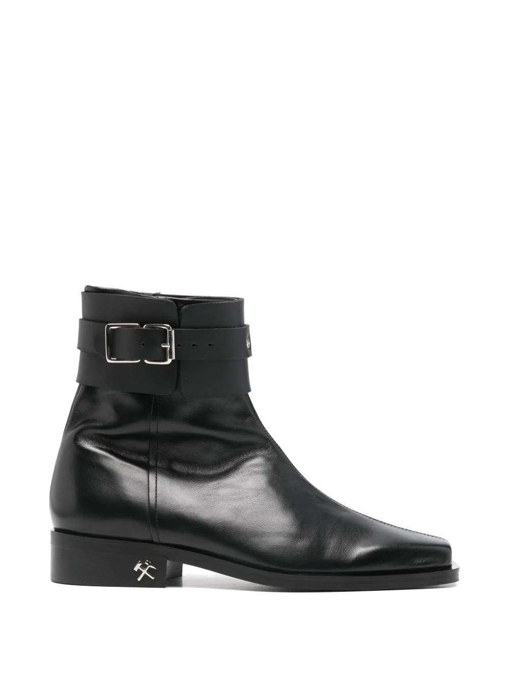 Adem leather boots Highlights - Black - Buckle-strap fastening - Ankle-length - Side zip fastening - Square toe - Block heel Imported Composition Outer: Calf Leather 100% Lining: Calf Leather 100% Sole: Calf Leather 100%