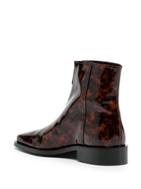 Adem tortoiseshell ankle boots Highlights - Caramel brown/chocolate brown - Faux leather - Tortoiseshell effect - Logo at the sole - Square toe - Front zip fastening - Branded leather insole - 35mm block heel - Rubber sole Imported Composition Outer: Polyurethane 55%, Polyester 26%, Cotton 19% Sole: Rubber 100% Lining: Calf Leather 100% SIZE & FIT Measurement HEEL 1.37 in(3.5 cm) CIRCUMFERENCE 11.81 in(30 cm) HEIGHT 5.9 in(15 cm)