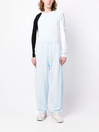 Ahmed logo-embroidered track pants Drawing style cues from sportswear, GmbH's Ahmed track pants are cut from organic cotton to a relaxed wide-leg silhouette set on an elasticated waistband. Tonal logo embroidery at the left leg adds the finishing touch. Highlights - Alice blue - Organic cotton - Embroidered logo at the leg - Elasticated waistband - Two side inset pockets - Straight leg Imported Composition Body: Organic Cotton 100% SIZE & FIT Model measurements Height 6 ft 2 in(1.87 m) Bust/Chest 36.22 in(92 cm) Hips 37.79 in(96 cm) Waist 28.34 in(72 cm) FittingInformation Designed for a relaxed tapered leg, allowing a comfortable loose fit above the knee with a closer fit towards the calves The elasticated waist allows for a comfortable fit Made from a midweight non-stretch fabric, this piece offers minimal elasticity when worn This piece fits true to size – take your usual size Washing instructions Machine Wash