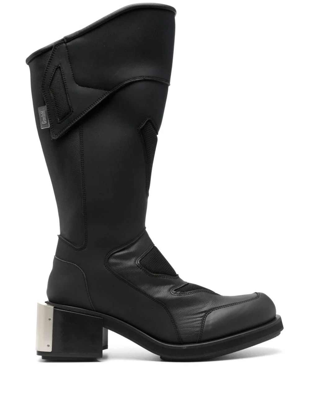 Baris Knee High Moto boots Highlights - Black - Faux leather - Pebbled texture - Panelled design - Side zip fastening - Side touch-strap fastening - Mid block heel - Mini logo tag - Round toe - Branded insole - Rubber outsole - Knee-high Imported Composition Outer: Artificial Leather 100%, Fabric 100% Lining: Artificial Leather 100%, Fabric 100% Sole: Rubber 100% SIZE & FIT Measurement CIRCUMFERENCE 16.53 in(42 cm) HEEL 2.75 in(7 cm) HEIGHT 14.17 in(36 cm) Sole height 0.78 in(2 cm)