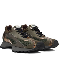 Low-top mesh, grained faux-leather, and buffed faux-leather sneakers. · Square toe · Lace-up closure · Logo patch at padded tongue · Padded collar · Pull-loop with logo hardware at heel tab · Jersey lining · Foam rubber midsole · Treaded rubber sole Supplier color: Brown Upper: textile, synthetic. Sole: rubber. Made in Portugal 252979M237001