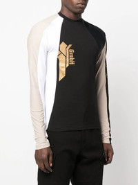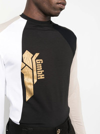 colour-block logo-print T-shirt Highlights - Black - Beige - Ecru - Stretch organic cotton - Logo print to the front - Colour-block design - Round neck - Long sleeves - Straight hem Imported Composition Organic Cotton 94%, Spandex/Elastane 6% SIZE & FIT Model measurements Height 6 ft 0 in(1.84 m) Bust/Chest 35.82 in(91 cm) Hips 37 in(94 cm) Waist 28.34 in(72 cm) FittingInformation This piece fits true to size. We recommend you get your regular size Cut for a slim fit Made with a mid-weight stretch fabric