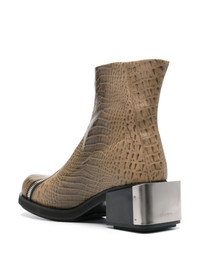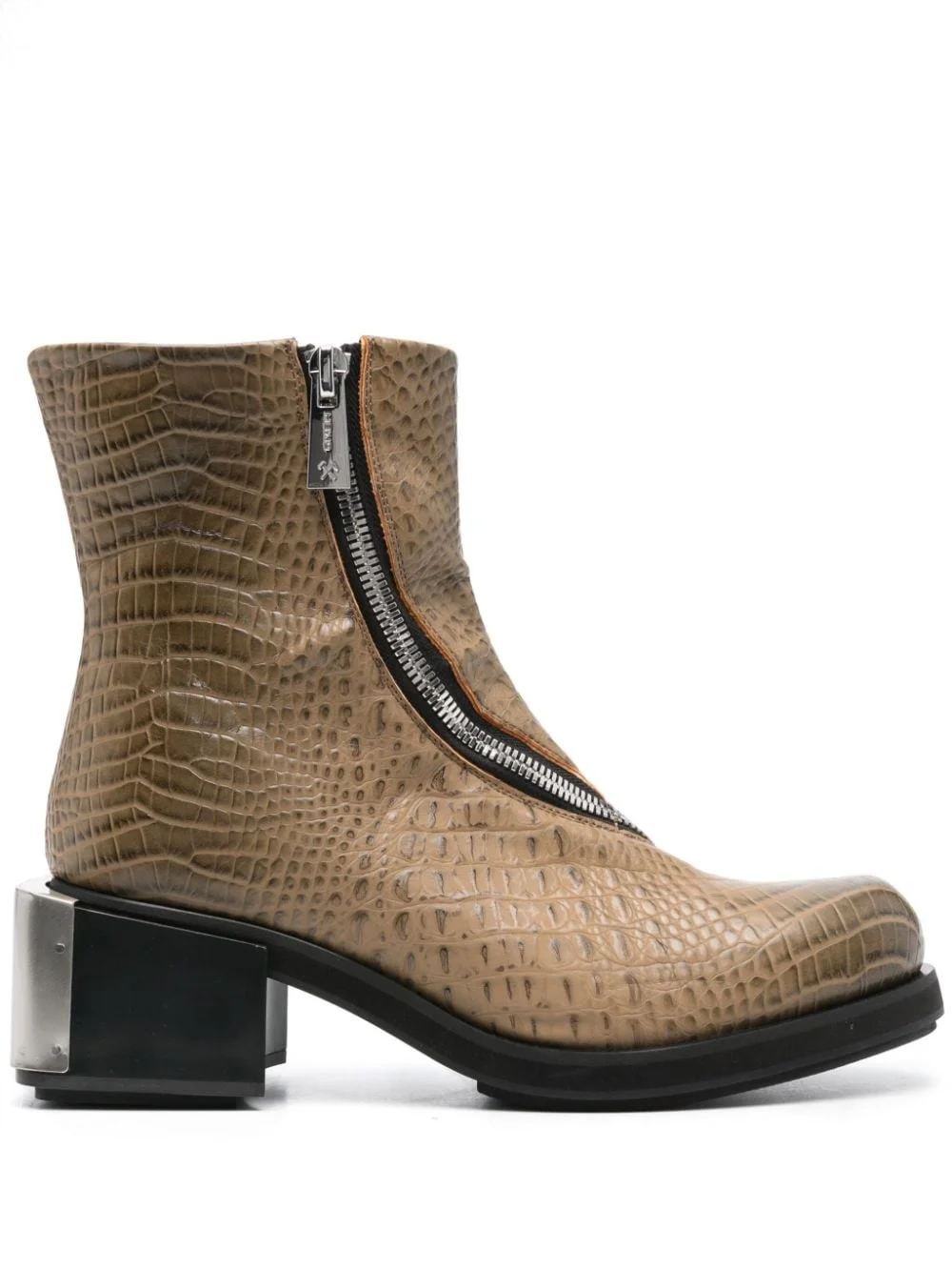 Ergonomic Riding ankle boots Highlights - Brown - Artificial leather - Embossed crocodile effect - Round toe - Metal cap to the rear with engraved logo - Branded insole - Rubber sole - Low block heel - Off-centre front zip fastening Imported Composition Other fibres 100% SIZE & FIT Measurement CIRCUMFERENCE 11.02 in(28 cm) HEEL 2.55 in(6.5 cm) HEIGHT 6.69 in(17 cm) Sole height 0.78 in(2 cm)