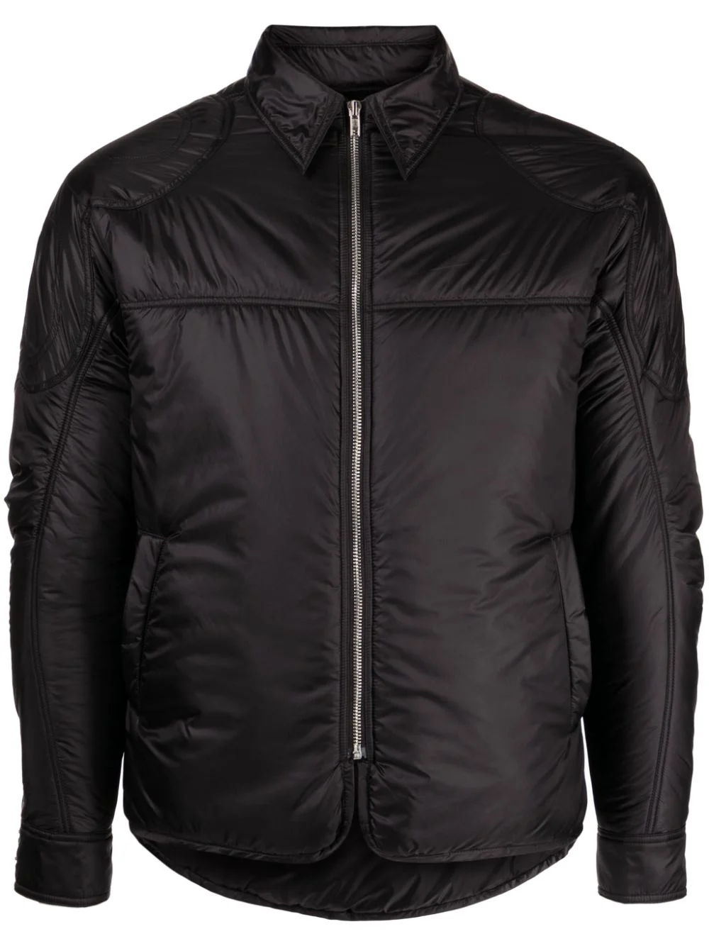 padded shirt jacket Highlights - Black - Recycled polyamide/recycled polyester - Padded design - Classic collar - Front zip fastening - Two side welt pockets - Long sleeves - Curved hem Imported Composition Body: Recycled Polyamide 100% Filling: Recycled Polyester 100% SIZE & FIT Model measurements Height 6 ft 2 in(1.89 m) Bust/Chest 37.4 in(95 cm) Hips 36.61 in(93 cm) Waist 28.34 in(72 cm) FittingInformation Designed for a boxy fit, intended for a loose fit throughout Made from a padded non-stretch fabric, giving it no natural elasticity This piece fits true to size – take your usual size Washing instructions Dry Clean Only