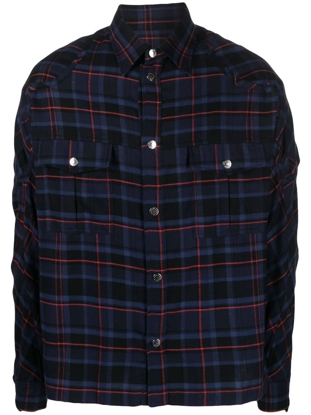 plaid-check print shirt Highlights - Dark blue - Cotton blend - Plaid check print - Classic collar - Front button fastening - Long sleeves - Two chest flap pockets Imported Composition Cotton 52%, Lyocell 48% SIZE & FIT Model measurements Height 6 ft 2 in(1.88 m) Bust/Chest 36.61 in(93 cm) Hips 37.79 in(96 cm) Waist 28.74 in(73 cm) Measurement CHEST 51.18 in(130 cm) SLEEVE LENGTH 24.4 in(62 cm) Shoulder Width 20.86 in(53 cm) FittingInformation This piece fits true to size. We recommend you get your regular size Cut for a loose fit Made with a mid-weight non-stretch fabric Washing instructions Machine Wash