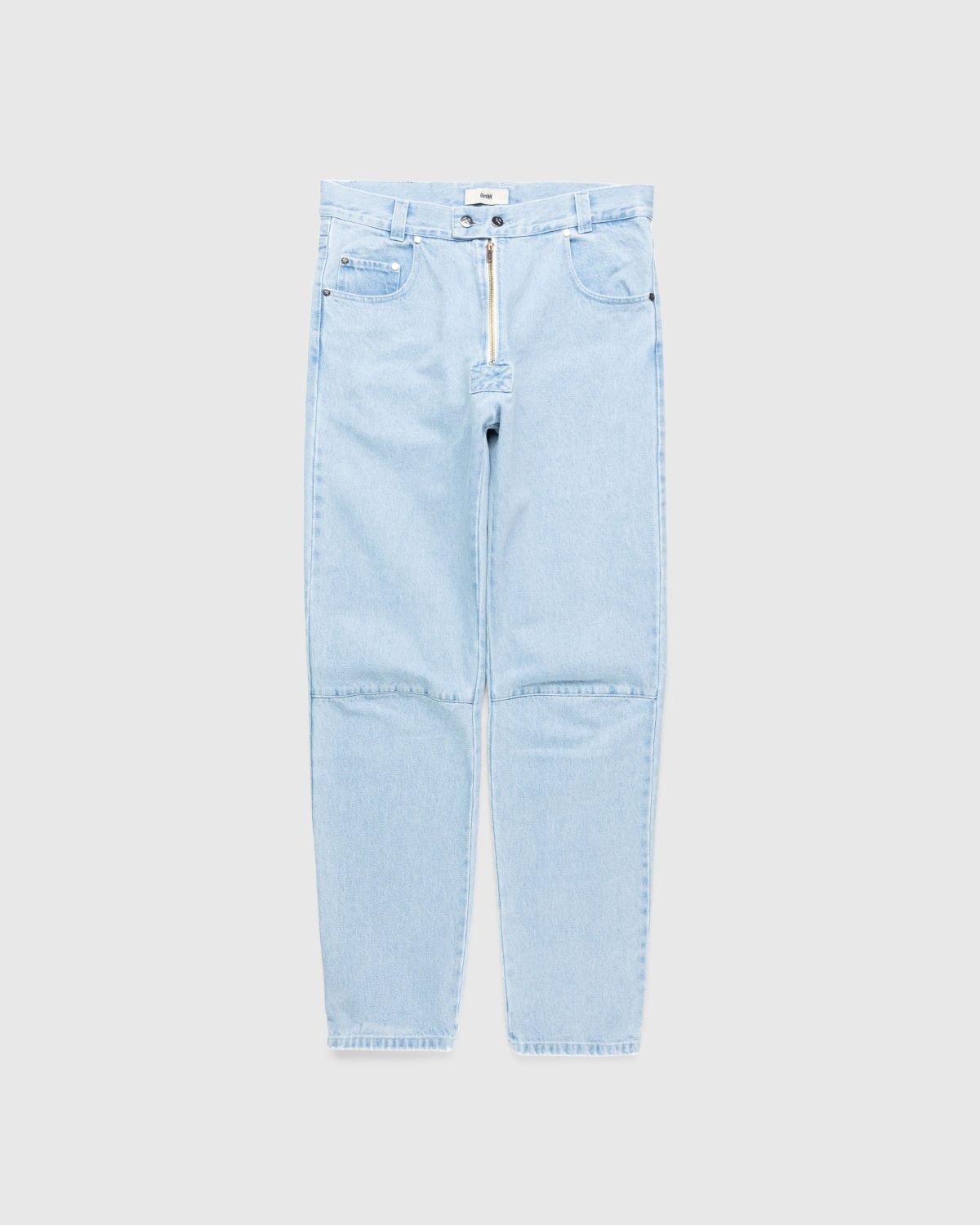 This unisex denim style by GmbH opts for a single zip front instead of the brand’s trademark double zip. Produced in 100% organic cotton, the pair is cut for a regular fit with a high waist and a straight leg. It features classic five-pocket construction and is detailed with tonal embossed hardware and buttons, as well as a leather logo patch incorporated onto the back of the waist. Size & Fit Regular fit with a high waist and straight leg. The model is wearing a size 32, and is 184cm/ 6’0” tall with a 93cm/ 36.6’ chest. While this piece is from the men’s collection, we shoot on female, male, and non-binary models. Product Details 100% organic cotton. Five-pocket construction. Tonal embossed hardware and buttons. Button fastening. Single zipper at the front. Belt loops. Logo patch at the back waist. Unisex.