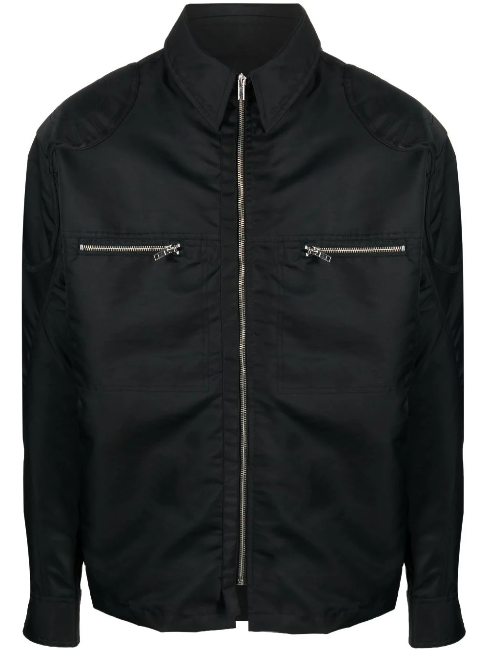 zip-up shirt jacket Highlights - Black - Shoulder patches - Pointed flat collar - Front zip fastening - Long sleeves - Two zip-fastening chest pockets Imported Composition Recycled Nylon 100% SIZE & FIT Model measurements Height 6 ft 2 in(1.87 m) Bust/Chest 38.18 in(97 cm) Hips 36.61 in(93 cm) Waist 29.13 in(74 cm) FittingInformation Designed to be unstructured, offering a loose fit throughout Made from a lightweight non-stretch fabric This piece fits true to size – take your usual size Washing instructions Machine Wash