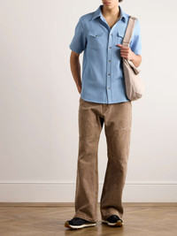 Cashmere-blend denim isn't something you see so often, and you'll wish that weren't the case after feeling God's True Cashmere's shirt. It's enriched with cotton and has a twill weave to replicate the look of your favourite workwear staple. Take a closer look and you'll see that each of the snap fastenings are set with hand-carved tiger’s eye. Size & Fit - Fits true to size. Take your normal size - Designed for a regular fit - Weighted, non-stretchy fabric - Model is shown wearing a M - Model measures: chest 38"/ 96cm, height 6'2"/ 188cm Details & Care - Light-blue cashmere and cotton-blend denim - Snap fastenings - 59% cashmere, 41% cotton - Machine wash