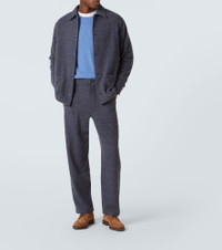 Herringbone checked cashmere straight pants