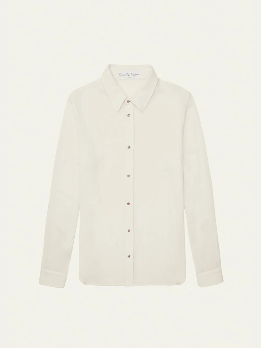 God's True Cashmere sport shirt crafted from solid cashmere gauze cloth Point collar Amethyst snap closure Long sleeves Made in Italy Model is 6'1"/185cm. Online Inquiries: BGS21_NBZ0Z| Store Inquiries: #4746342