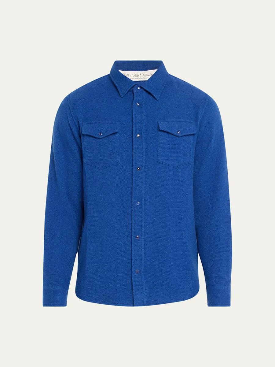 Men's Cashmere Shirt with Lapis Lazuli Snaps