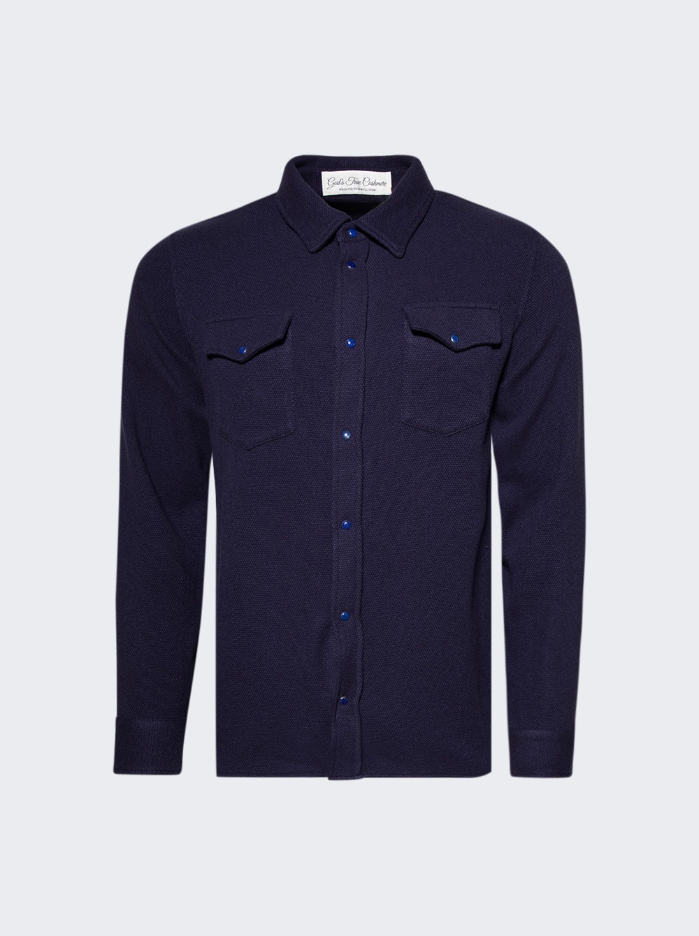 Midnight Sea Solid Cashmere Shirt Lapis Lazuli