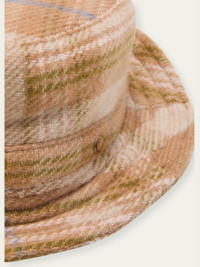 God's True Cashmere x Nick Fouquet bucket hat in patchwork tartan plaid Flat crown Strap with tiger's eye gemstone snap Cashmere Made in Italy Online Inquiries: BGS21_NBQ9A| Store Inquiries: #4692606