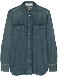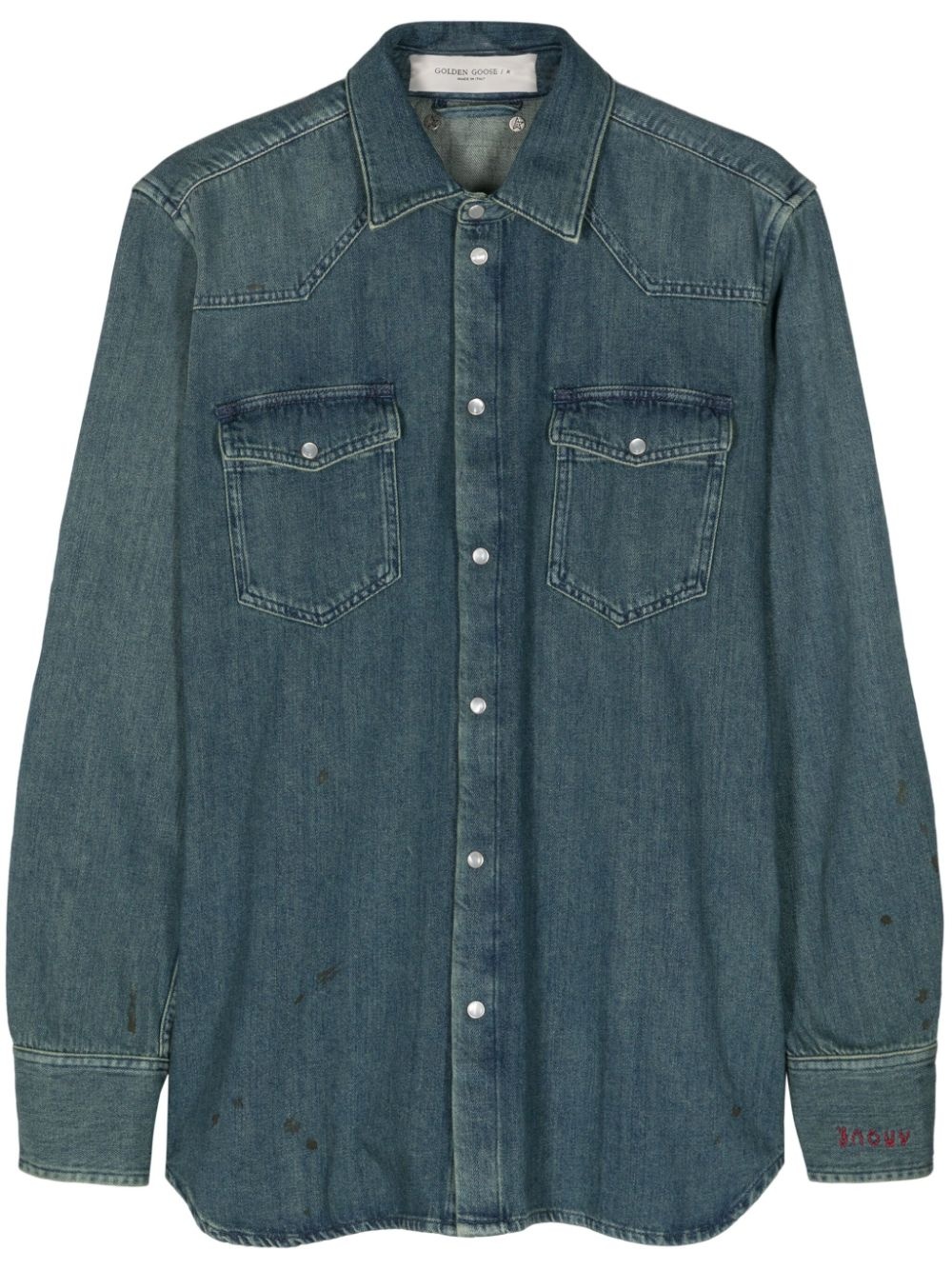 Axel star-appliqué denim shirt Highlights - Blue - Cotton - Denim - Mid-wash - Spread collar - Long sleeves - Press-stud fastening cuffs - Paint splatter detail - Embroidered logo at the sleeve - Two chest flap pockets - Star appliqu㩠to the rear - Curved hem - Front press-stud fastening Made in Italy Composition Cotton 100%, Viscose 100%