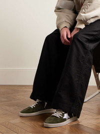 Ball Star Distressed Leather-Trimmed Suede Sneakers
