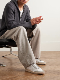 Ball Star Distressed Suede-Trimmed Leather Sneakers White