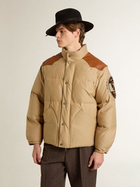 The second drop in the Fall/Winter 25 collection unfolds like a relaxed and refreshing journey, woven into the fabric of each and every piece. This unisex beige bomber jacket features a tobacco-colored leather detail on the shoulders and an embroidered patch on the left sleeve. The snap button fastening and two little stars on the back add the finishing touch. DETAILS Item No. GUP02346.P002092.15757 - Journey Collection - Color: beige - Tobacco-colored leather detail - Embroidered patch on the left sleeve - Snap button fastening - Unisex style - Main material: 55% cotton, 45% polyamide - Contrasting material: 100% cow leather - Made in Italy The model is 183 cm tall and is wearing a size M