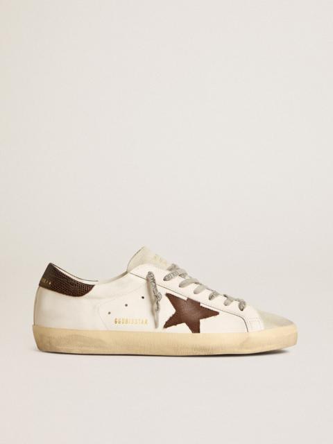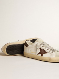 A timeless icon yet one that’s constantly evolving. At Golden, we love taking our classics and reworking them all the time, always from a new angle. These Super-Star with a white bio-based upper feature a brown canvas star, a dark brown lizard-print leather heel tab, and an ice-gray suede tongue. The ice-gray laces with contrasting black logo add the finishing touch. DETAILS Item No. GMF00101.F005991.11883 - White bio-based upper - Brown canvas star - Dark brown lizard-print leather heel tab - Ice-gray suede tongue - Ice-gray laces with contrasting black logo - Galvanic silver metal GGDB lettering - Vintage finish - Upper: 34% cow leather, 30% textile polyurethane, 22% cotton, 14% cellulose - Lining: 41% cotton, 41% textile polyurethane, 12% viscose, 6% polyester - Sole: 100% rubber - Handmade - Made in Italy