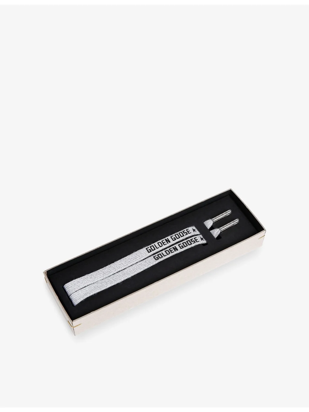 PRODUCT DETAILS - Golden Goose woven laces - 100% polyester - Self-tie fastening - Personalise your trainers, branded print with star, silver-tone metal - Wipe with a clean, dry cloth - Presented in a branded box Ref: R04103122