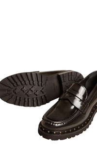 DETAILS AND INSIGHT Golden Goose chunky loafer in studded black leather in black. Upper: 100% Cow Leather, Lining: 100% Cow Leather, Sole: 100% Rubber Made In Italy Style GWF00782.F006302.90100