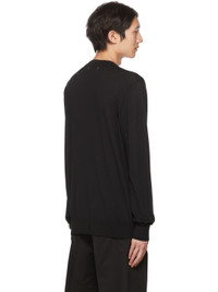 Knit virgin wool sweater. · Distressing at rib knit crewneck, cuffs, and hem · Detachable logo flag at cuff · Gold-tone hardware at back collar Part of the Golden Collection. Supplier color: Black 100% virgin wool.