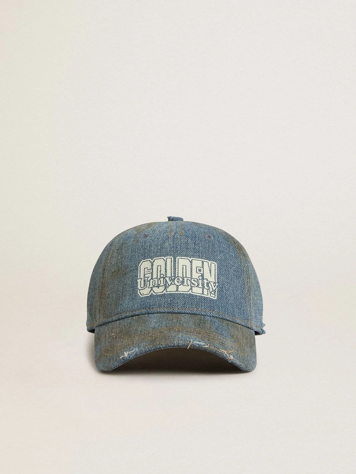 Inspired by the iconic Seventies, the carefree spirit of that era comes to life with the first drop of our Fall/Winter 25 collection. This denim cotton baseball cap with a lived-in finish features a "Golden" print in a worn-white color and lived-in details. DETAILS Item No. GUP01179.P002237.50491 - Color: denim - Lived-in details - Printed 'Golden' lettering in worn white - Metal adjuster - Secondary material: 100% cotton - Made in Italy